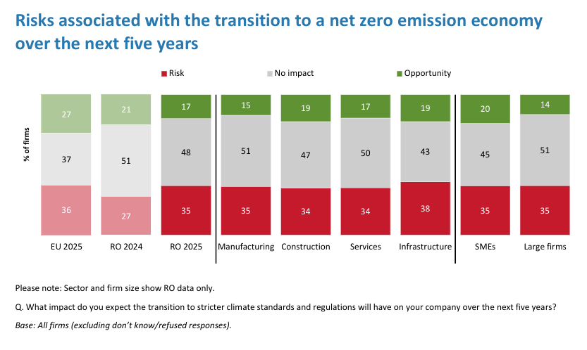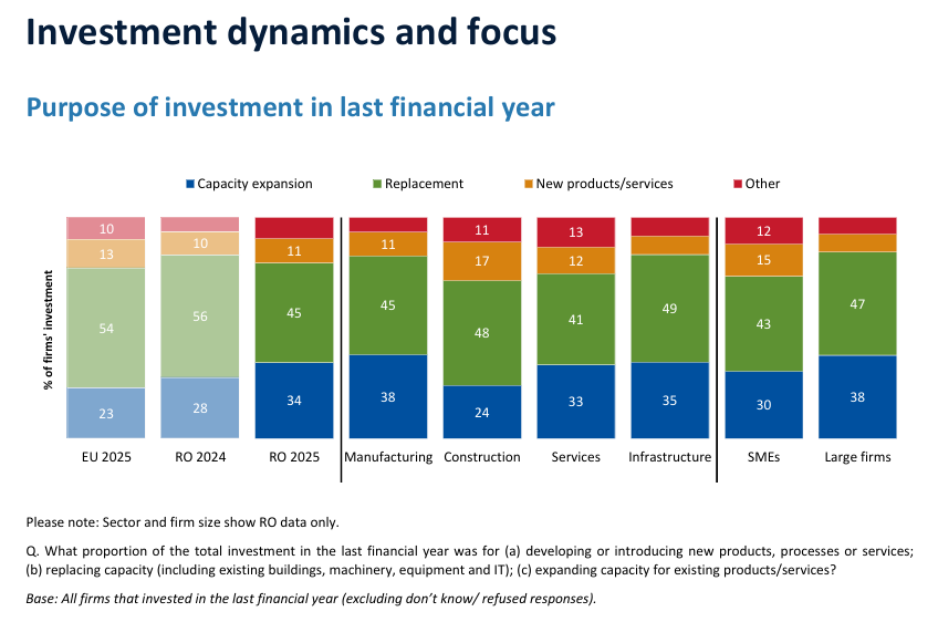 În ciuda faptului că o mare parte dintre companiile românești se așteaptă la o deteriorare economică, politică și de reglementare, balanța pozitivă a firmelor care intenționează să-și crească investițiile este comparabilă cu cea din UE, impulsionată de infrastructură și de marile companii.