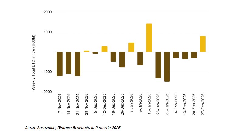 Un posibil semnal de stabilizare vine din zona ETF-urilor spot Bitcoin.