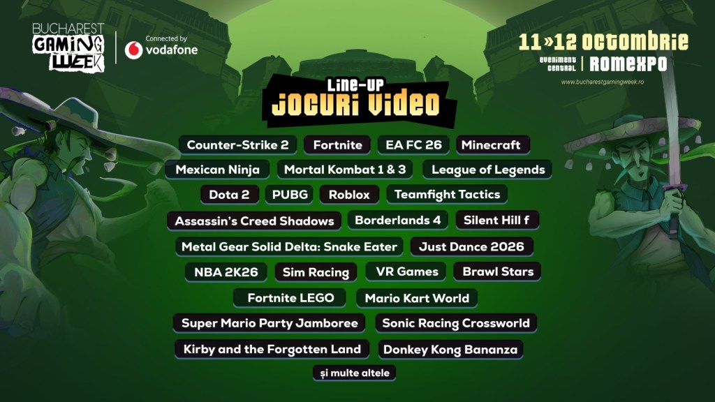 La eveniment, publicul își va putea demonstra abilitățile în Counter-Strike 2, Fortnite, Minecraft, Mortal Kombat, EA FC 26, Roblox, PUBG Mobile, LEGO Fortnite, Mario Kart și multe alte jocuri.