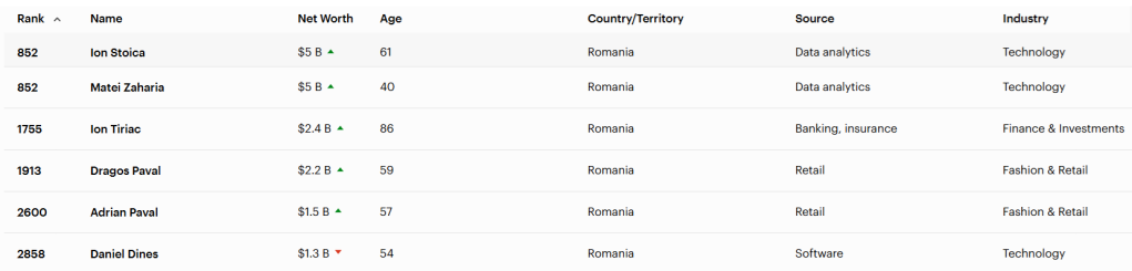 Și în acest an, în Topul Forbes apar aceiași 6 miliardari români ca și anul trecut, doar cifrele s-au schimbat și, ușor, ordinea din clasament. Primii doi sunt în top 1.000 la nivel mondial.