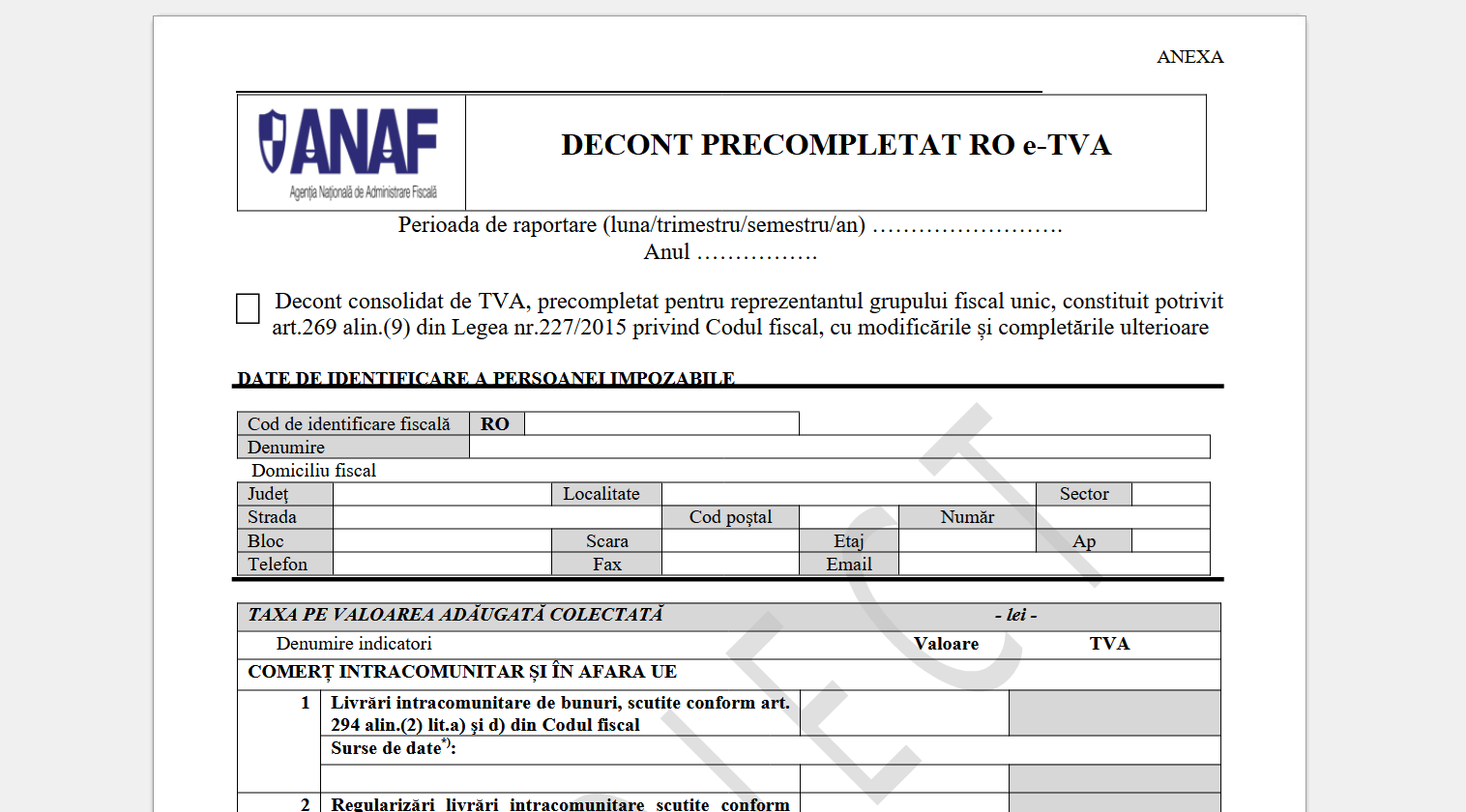 Ca atare, ANAF a făcut un nou model al formularului (300) ”Decont de taxă pe valoarea adăugată”, cu instrucțiuni de completare adaptate noilor prevederi legale.