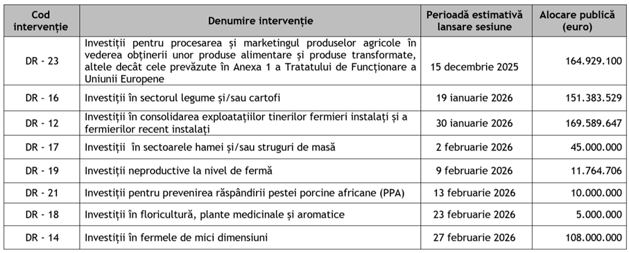 În data de 9 februarie 2026, ar urma să se lanseze sesiunea DR - 19 Investiții neproductive la nivel de fermă.