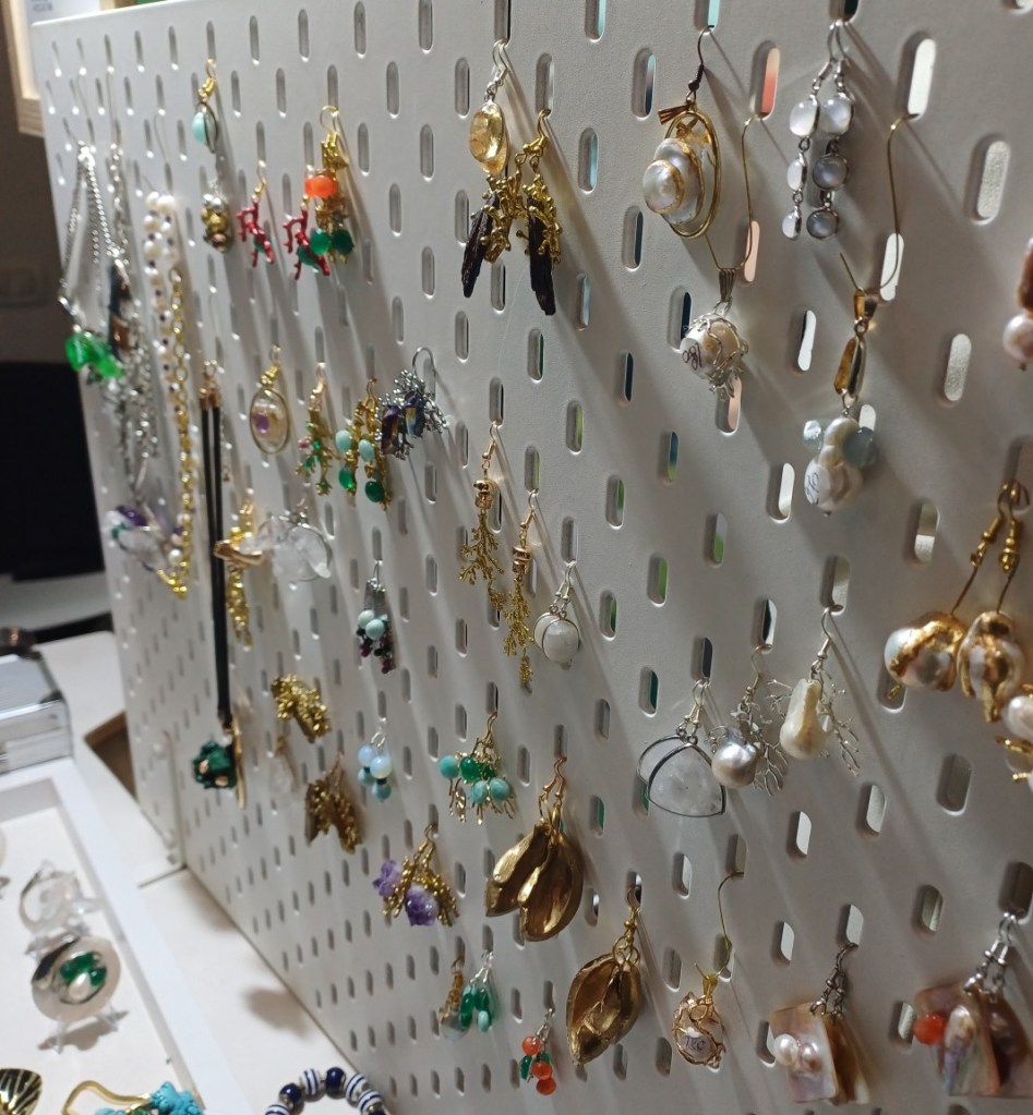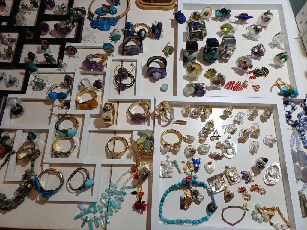 Ruxandra (Mirabilis Art Jewelry) mi-a spus, tot într-un zâmbet, din ce sunt făcute bijuteriile handmade pe care le avea la vânzare: din pietre semiprețioase, pietre prețioase, antichități, lemn vopsit, alamă și alte materiale. Ea preferă să lucreze piese unicat, de aceea mi-a și zis că nu se pregătește pentru Mărțisor, unde ar simți nevoia de a face modele asemănătoare.