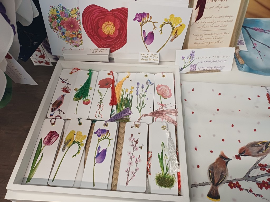 Ea spune că se așteaptă ca oamenii să vrea să cumpere mătasea pictată pentru o ocazie ca Ziua Femeii, dat fiind că produsele sunt unicate și mai scumpe: de la 240 lei pentru fundele pictate până la peste 1000 lei pentru eșarfele mari; acestea reprezintă un cadou mai special, spune Claudia. Pentru cei care căutau cadouri mai accesibile, dar la fel de speciale, ea a mai venit la târg cu printuri și semne de carte inspirate din designurile de pe eșarfe.
