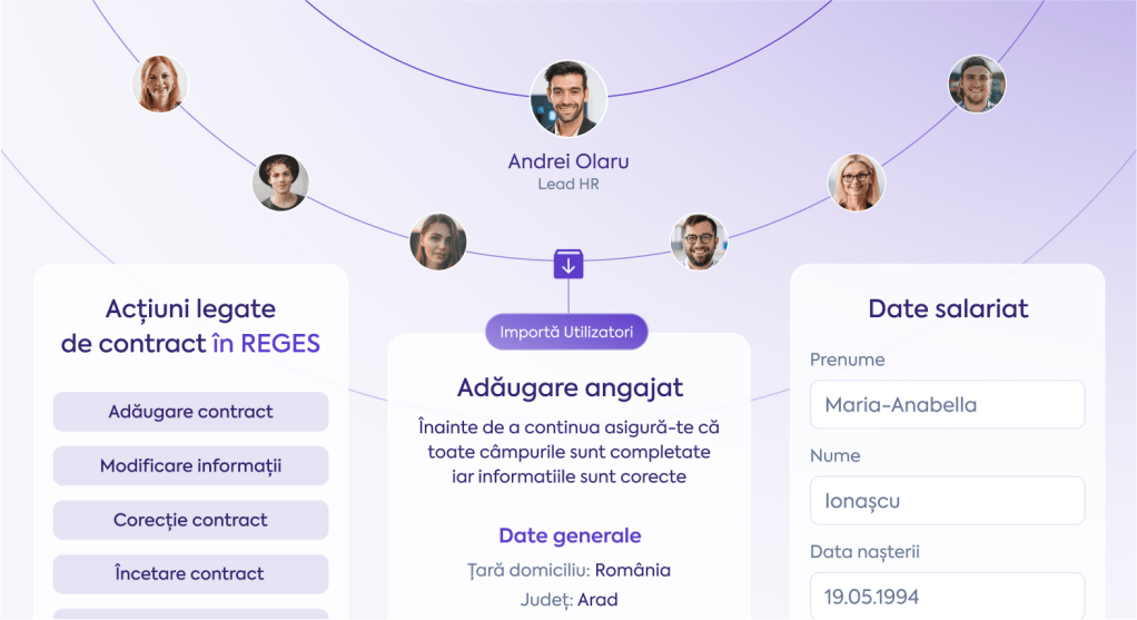 - Importarea rapidă a datelor de personal și a celor contractuale